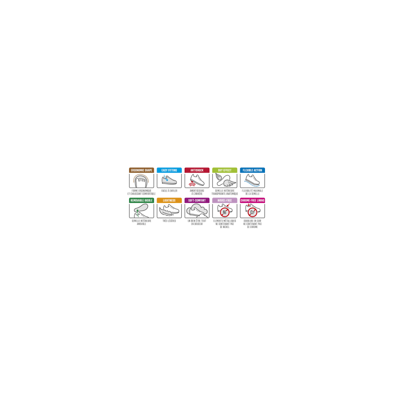 Chaussures idéales pour le plein-air aussi-bien que pour l'intérieur, même à des températures élevées.