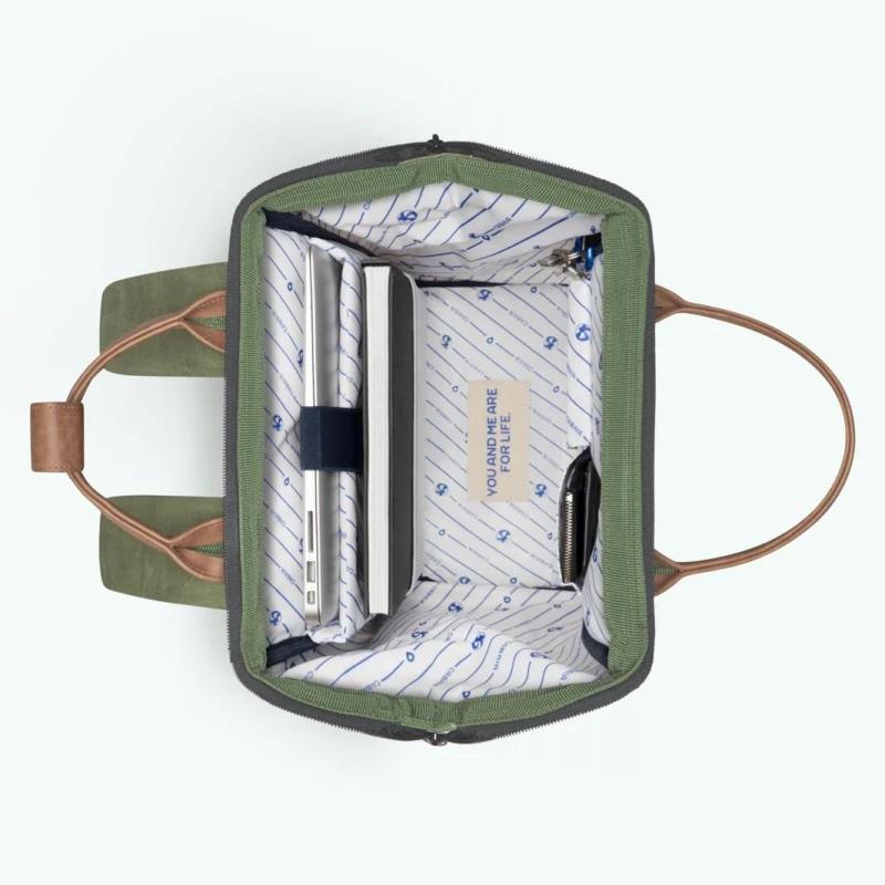 Ce sac est accompagné de 2 poches interchangeables : unie verte (Nicosie) + à motifs (Santiago)