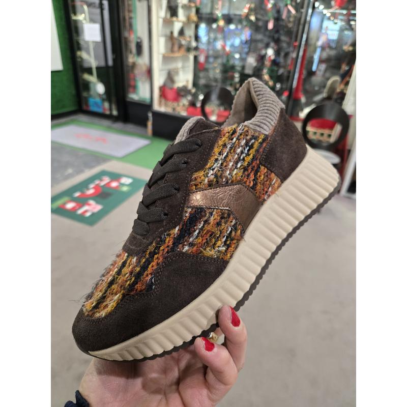 Baskets ALANA sports chics SOFTWAVES 8.95.20 cuir velours marron semelle amovible twead coloré marron orangè