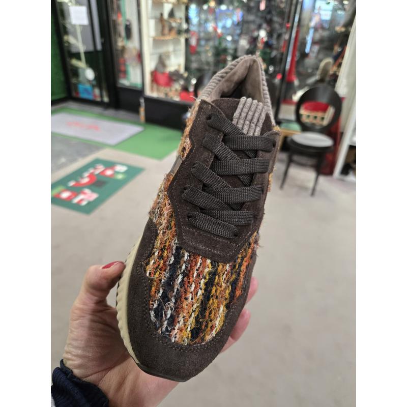 Basket fantaisie dessus twead coloré marron orangé associé au cuir marron.