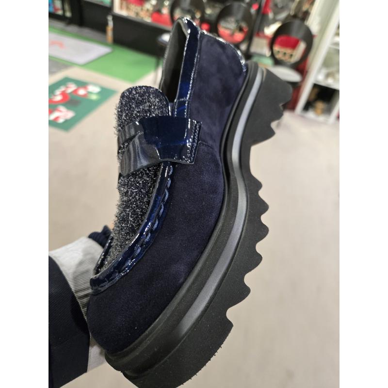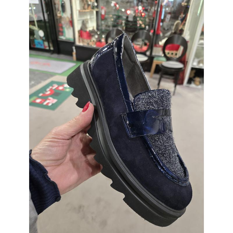 Mocassin MALIA femme SOFTWAVES semelle crantèe plateforme 9.20.05 Marine Vernis Ink empiecement plateau gris brillant semelle amovible