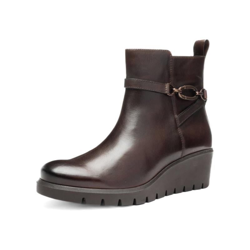 Bottines femme compensées ARA SHOES Cuir Marron Cacao COMO zip et bijoux en decoration de côté