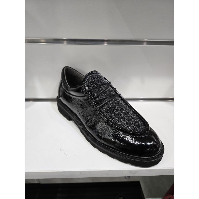 Un joli DERBY semelle gomme pour femme. En cuir vernis noir avec sur le plateau un empiècement brillant qui donne tout le charme à ce derby branché. Il s’accorde avec toutes vos tenues habillées ou décontractées. Un design parfait pour aller au boulot ou faire du shopping. DARNET chaussures port partagé colissimo achetezaupuy.Com