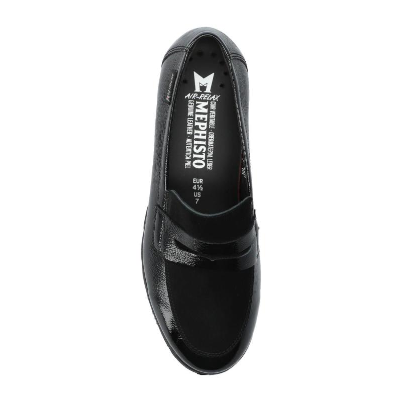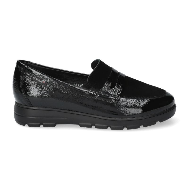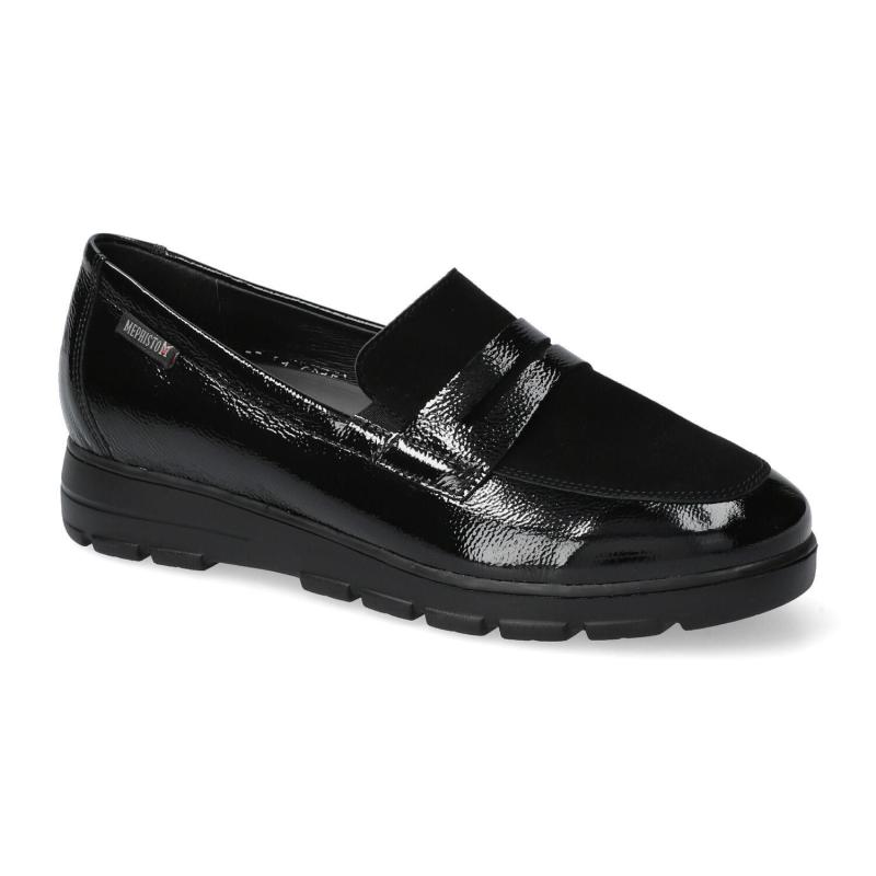 Mocassin MEPHISTO compensé Cuir Vernis Noir/ Daim Noir SOFT AIR Semelle amovible CARIMA