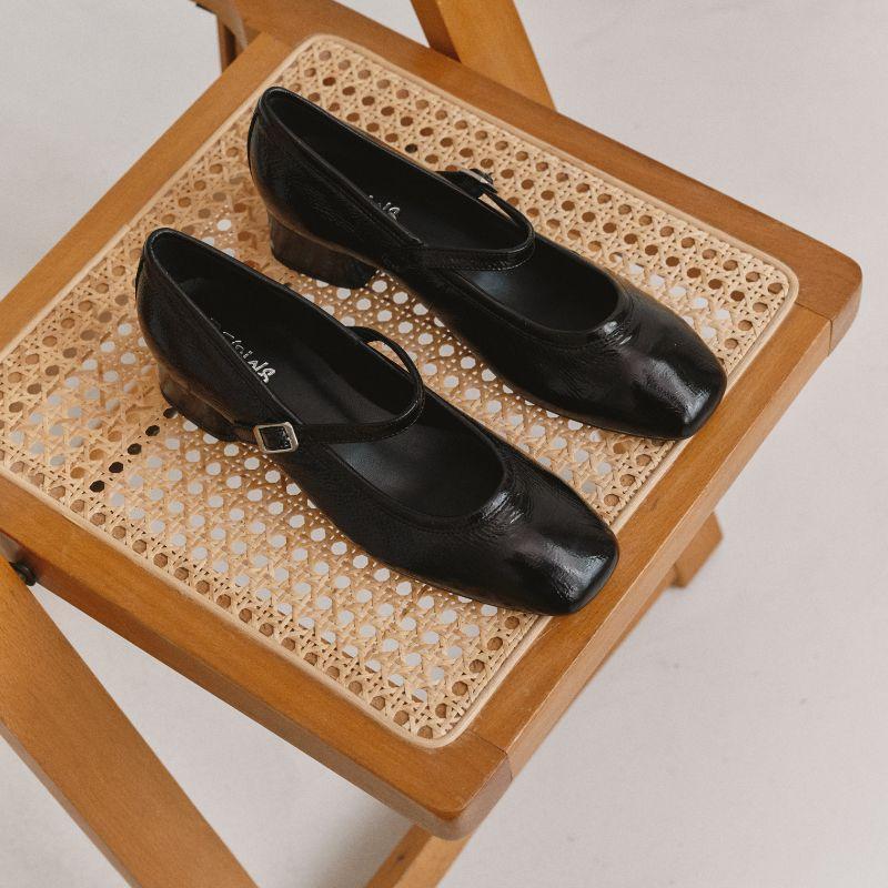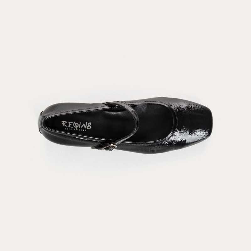 BABIES talon 3,5cm KELLY CUIR naplack Vernis Noir, bride fine coup de pied REQINS