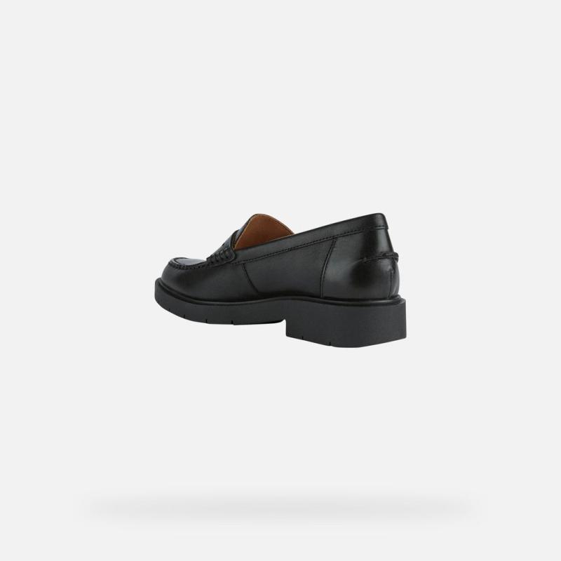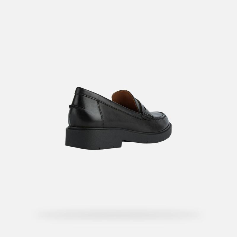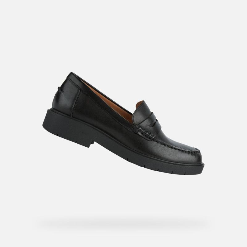 Mocassin femme collège GEOX D25QRA Cuir Noir SPHERICA EC1 SEMELLE AMORTIE BALLES BLEUES