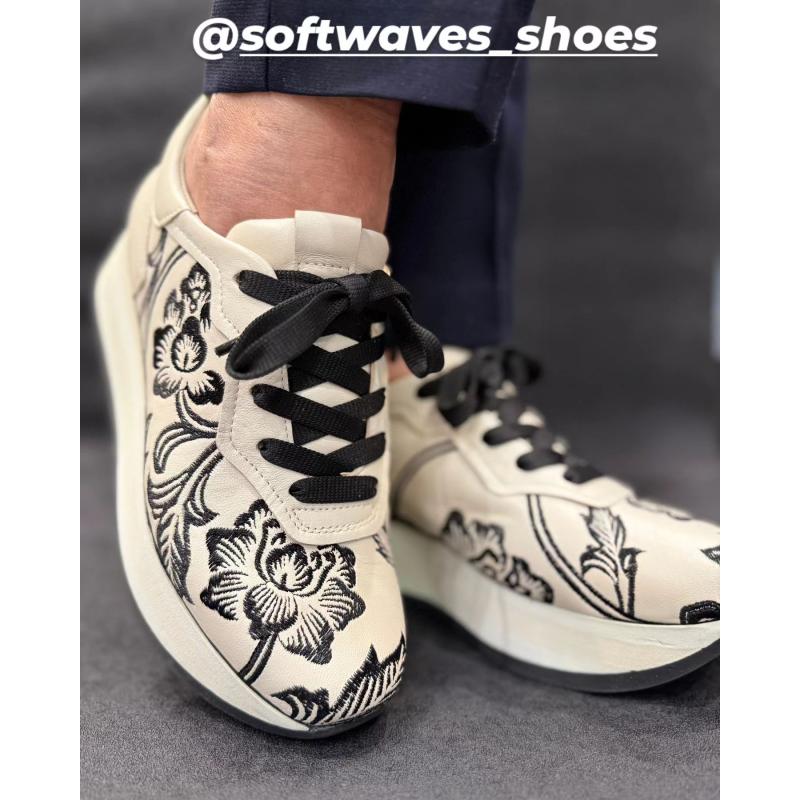 Les SOFTWAVES ici avec un mocassin sport, chic. 7.78.93 CHRISTAL en cuir Coco/Blanc. Une marque riche en design fantaisie. Des chaussures confortables, élégantes, une nouveauté, la semelle épaisse et bloc qui font tout le charme. Un mocassin avec plateau fantaisie motifs fleuris qui fait l’originalité, que l’on remarque ! n’hésitez plus... elles vous attendent pour compléter votre dressing.