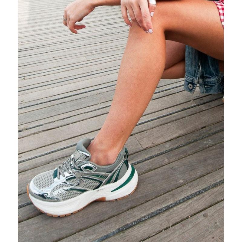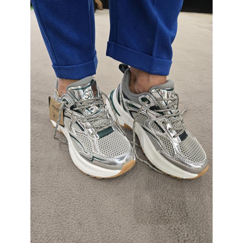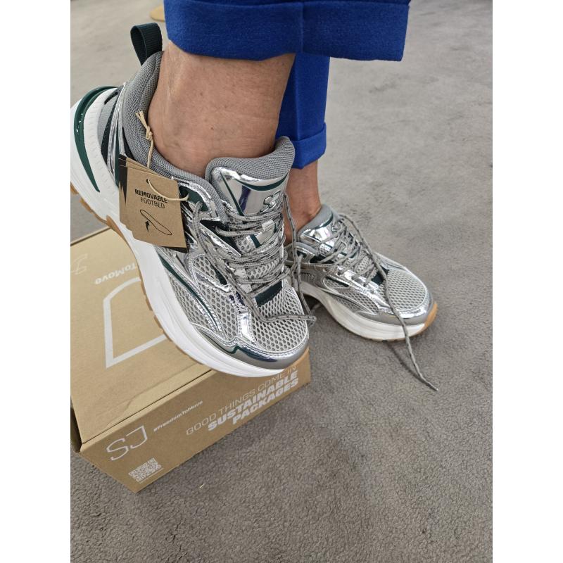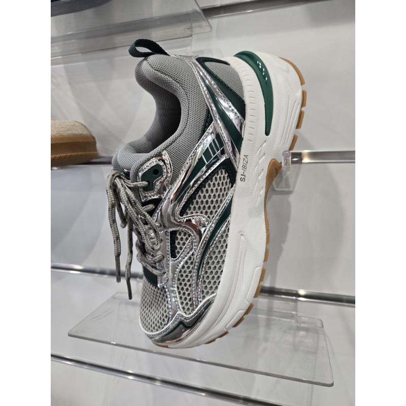 Baskets décontractées pour femme IBIZA Metal argent/Vert 624836 semelle amovible fantaisie et confortable SJ LIFESTYLE