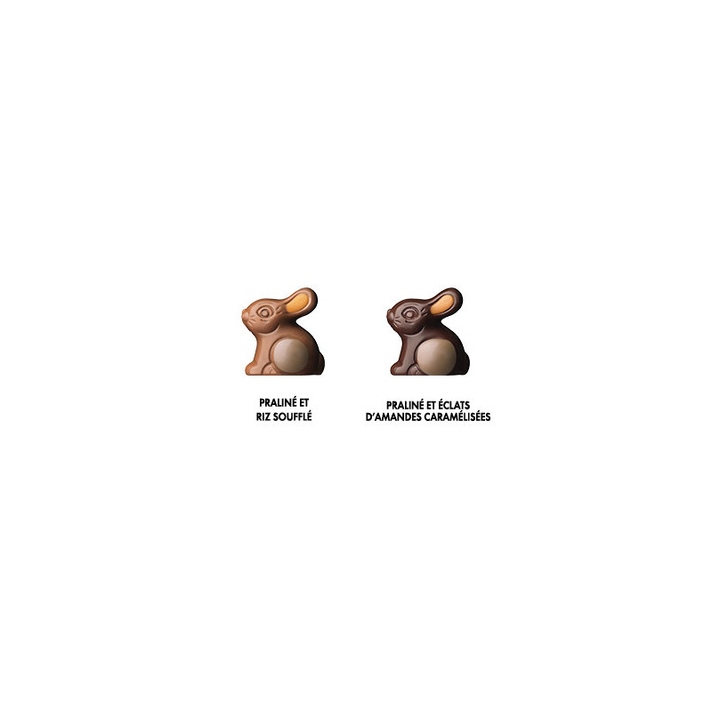 Praliné aux éclats de crêpe dentelle, au riz soufflé, au caramel ou encore au sucre pétillant… craquez pour cet assortiment de délicieux petits sujets de Pâques.