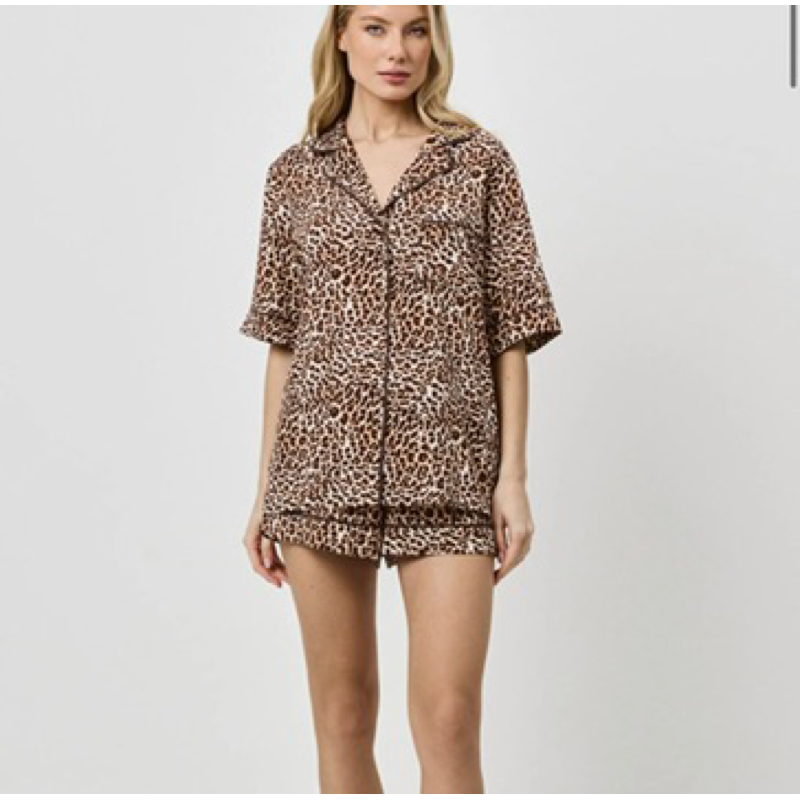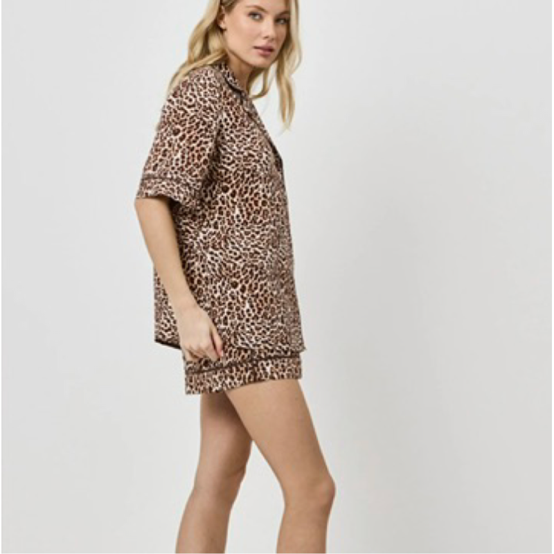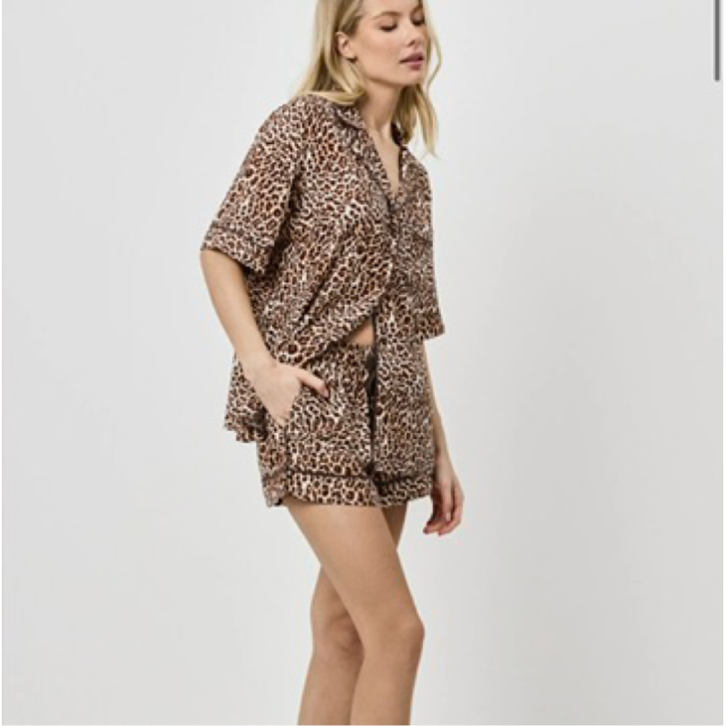 Il présente un imprimé animalier intégral dans des tons bruns chauds.