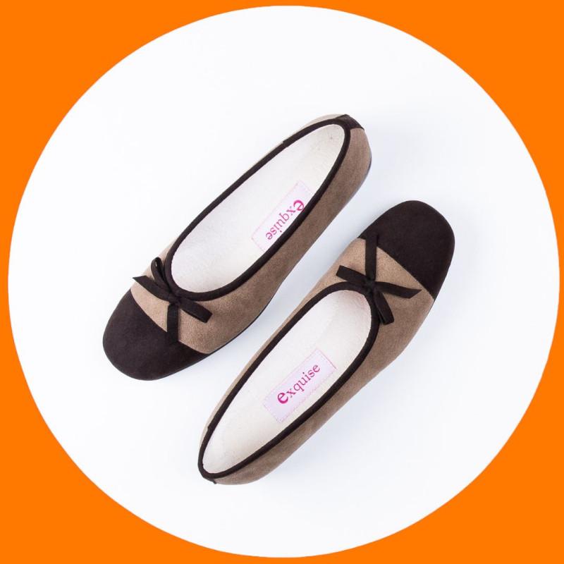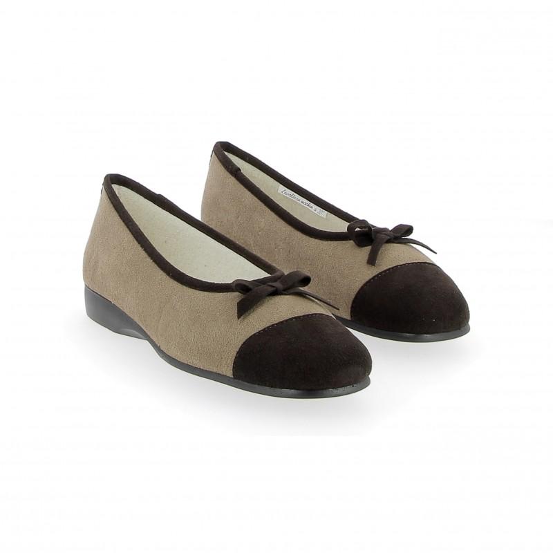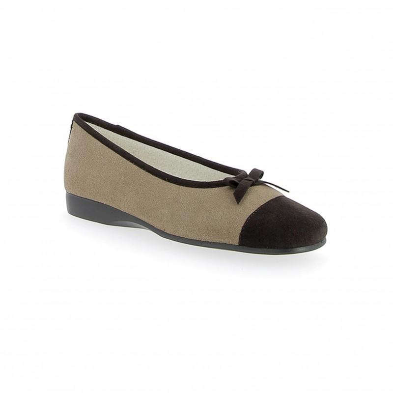 ELIOS Taupe bout marron foncé ballerine Alcantara EXQUISE doublure éponge noeud en décoration